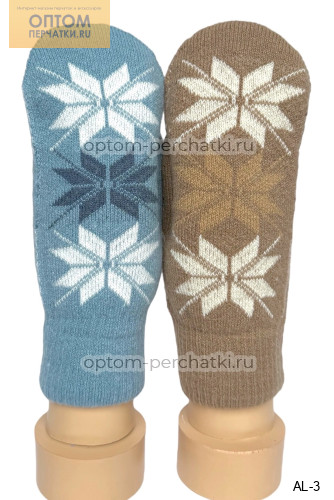 Варежки на меху. Рисунок <снежинки> на тыльной и ладонной поверхностях.