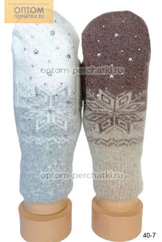Варежки на меху. Рисунок <снежинка> на тыльной и ладонной поверхностях, и стразы-звездочки на тыльной стороне.