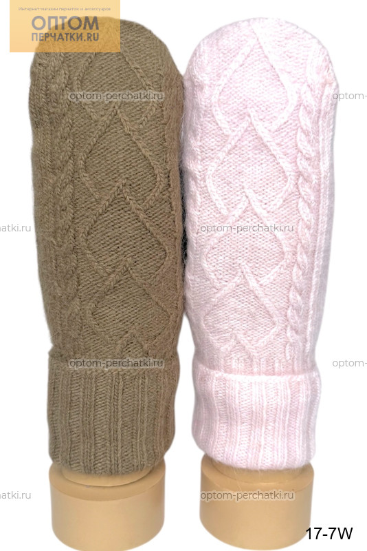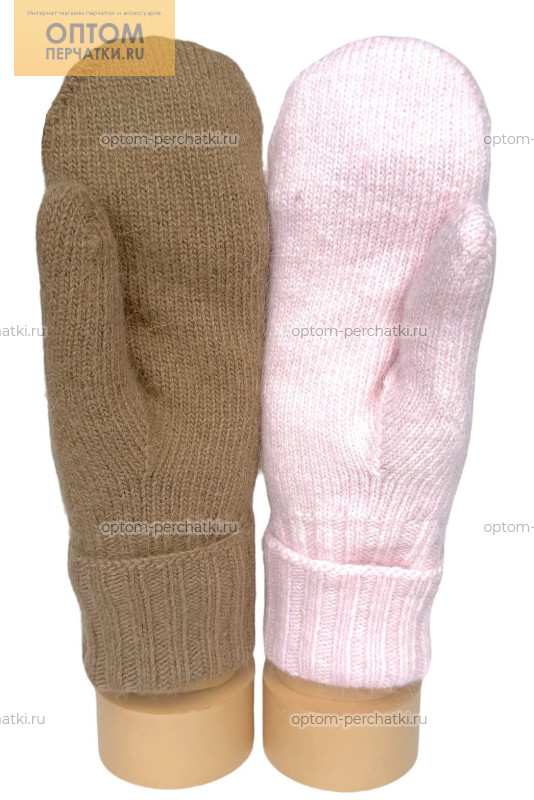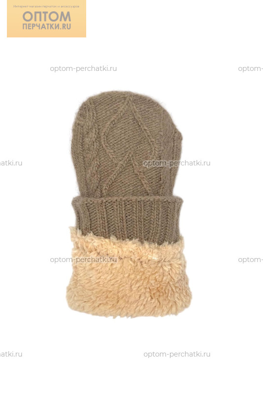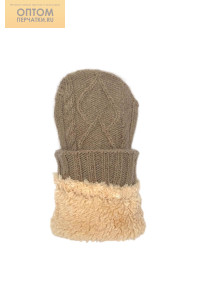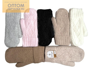 Варежки на меху. Теплые, мягкие, из пушистой пряжи, с отворотом. Вязаный узор <сердечки>.