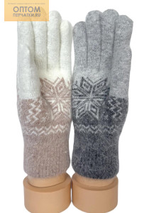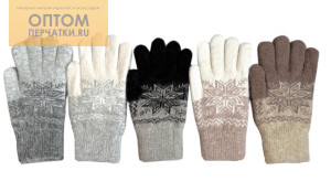Перчатки двойные с мягким начесом внутри. Рисунок <снежинка> на тыльной и ладонной поверхностях.