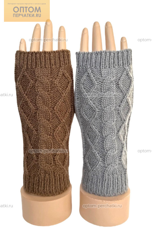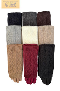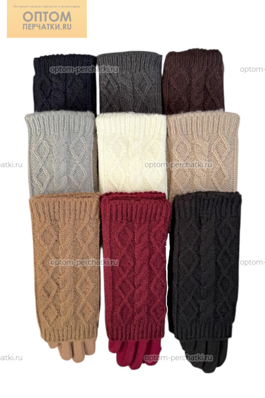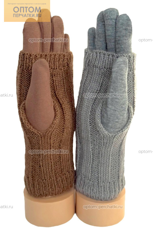 Оригинальная модель! Перчатки выполнены из трикотажа (на плюше), митенки — связаны из пряжи. Подобраны тон в тон.