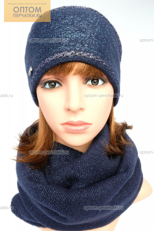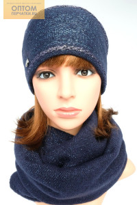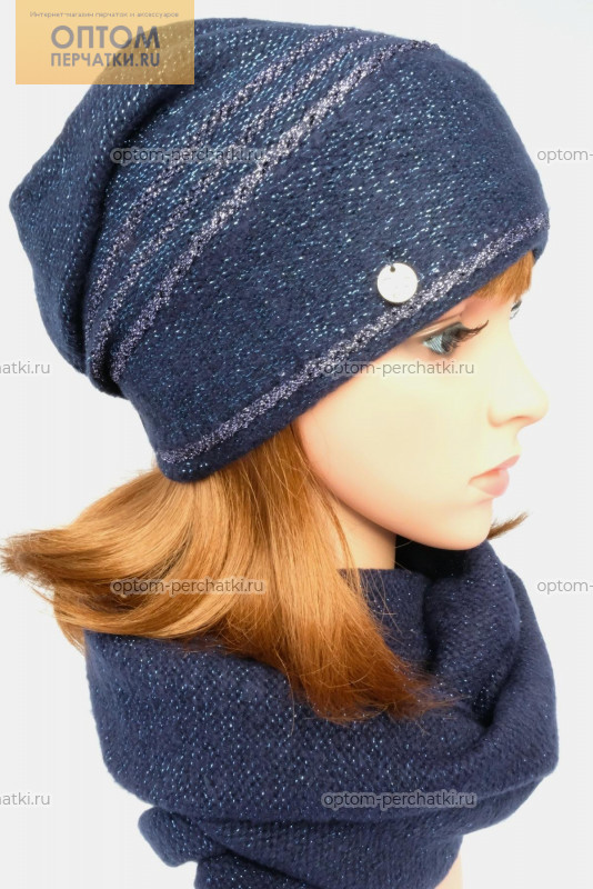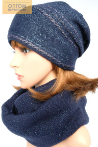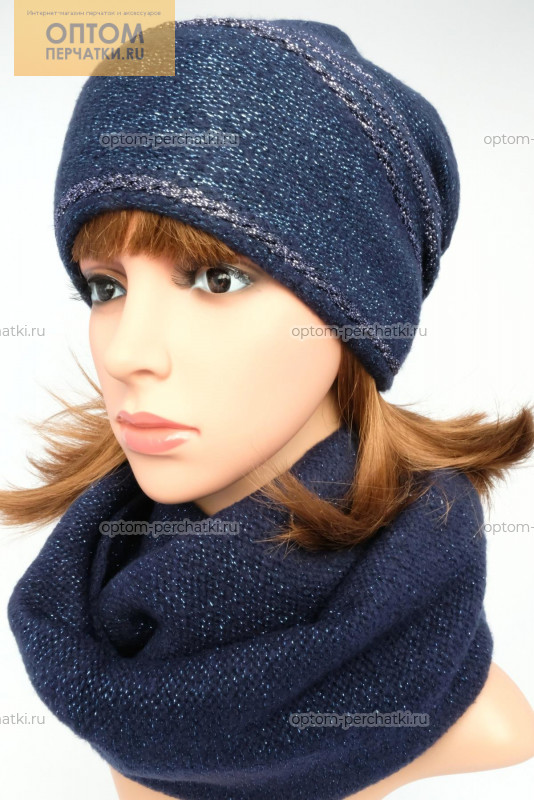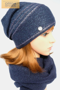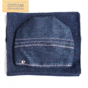 Описание: Шапка со сложной сборкой и контрастными металлизированными полосами и снуд в два оборота. Шапка утеплена полностью флисом. Комплект выполнен из мягкой пряжи с добавлением металлизированной нити.